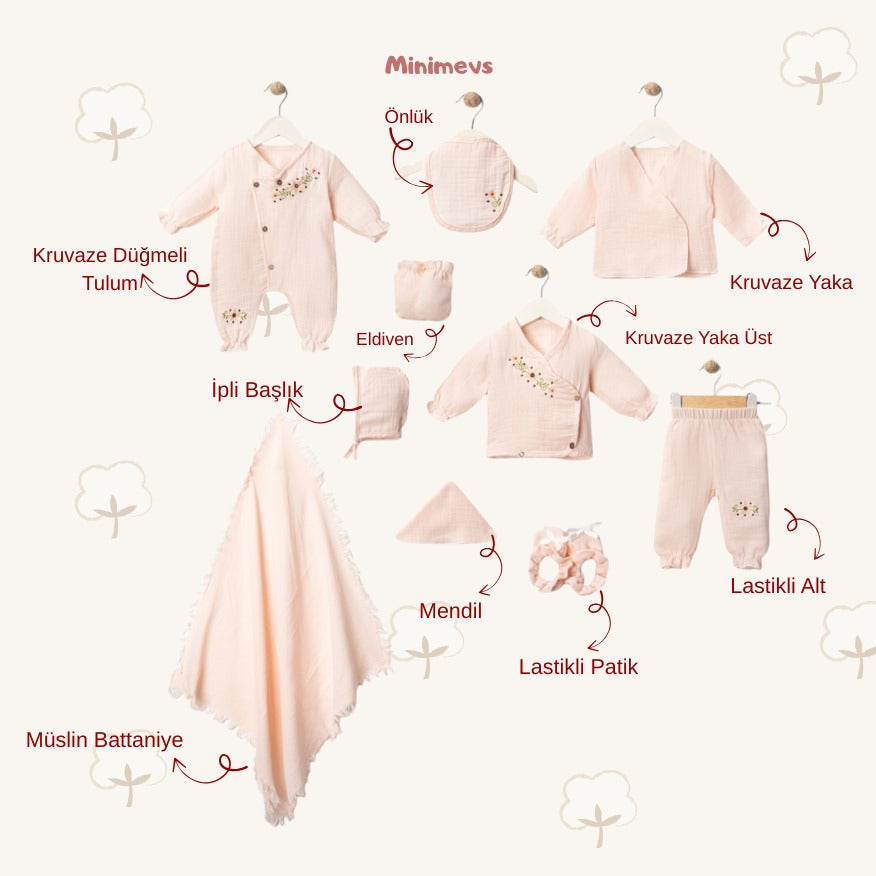 Müslin 10'lu Kız Bebek Hastane Çıkış Seti