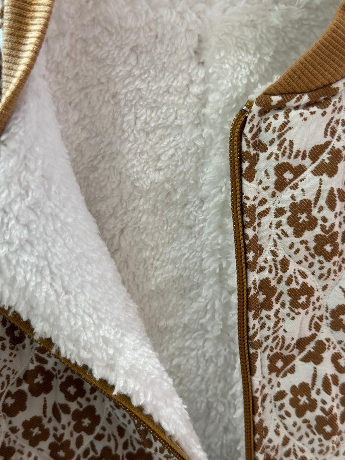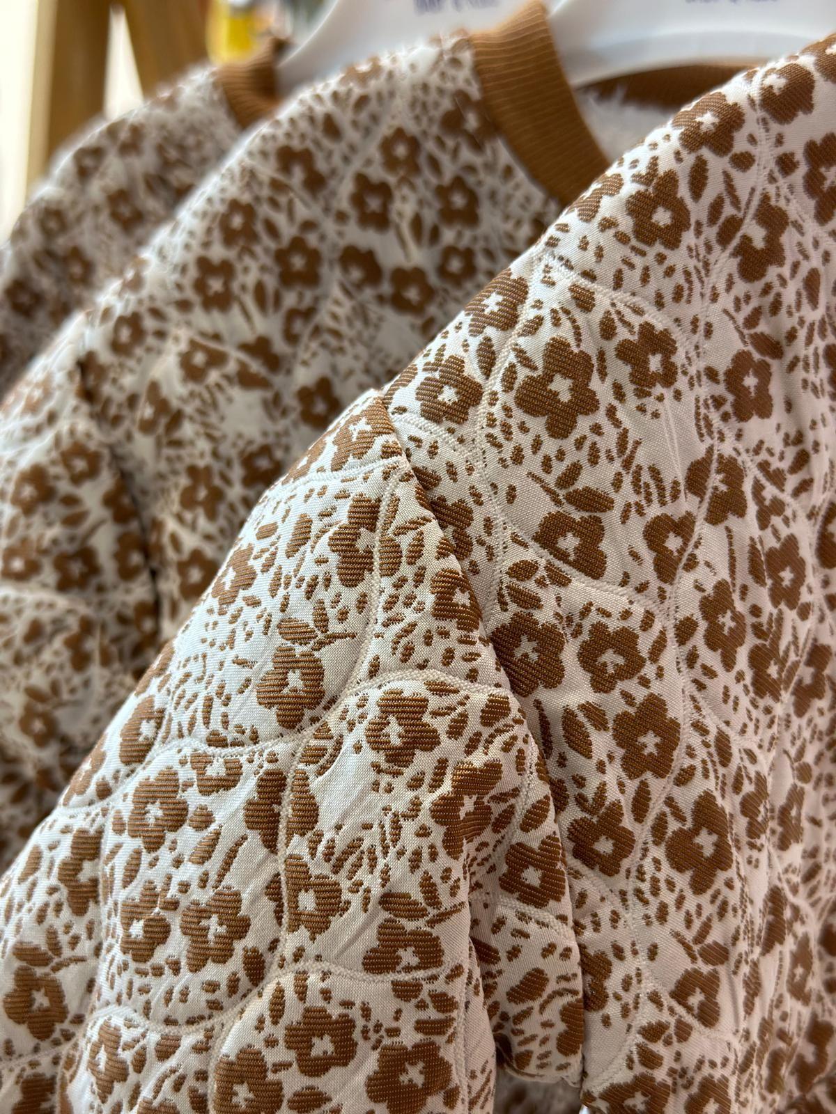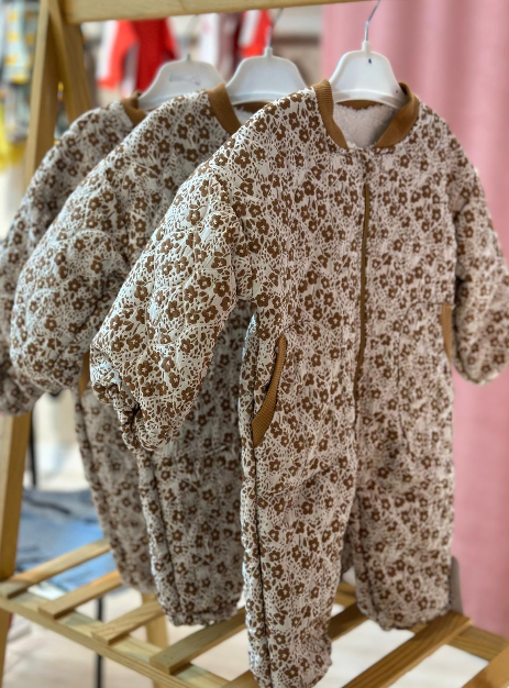 • Zamansız Çiçek Deseni: Kahverengi ve krem/bej tonlarındaki narin, nostaljik çiçek deseni, tulumu hem sevimli hem de şık bir dış giyim parçası yapar.
