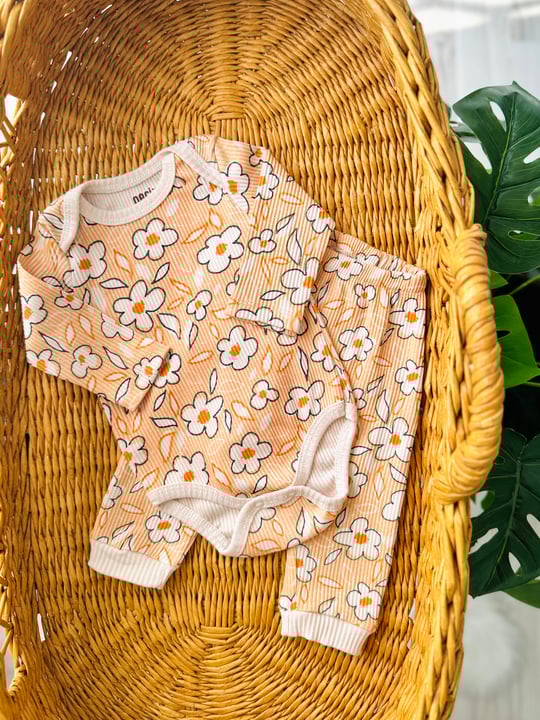 Eva Çiçek Baskılı Kız Bebek 3 lü Body